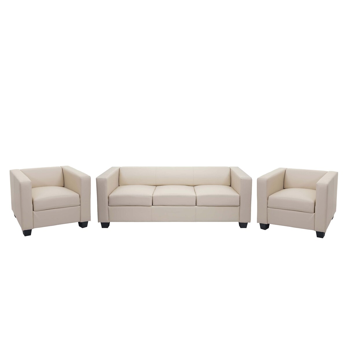 Mendler 3-1-1 Sofagarnitur Couchgarnitur Loungesofa Lille ~ Kunstleder, creme