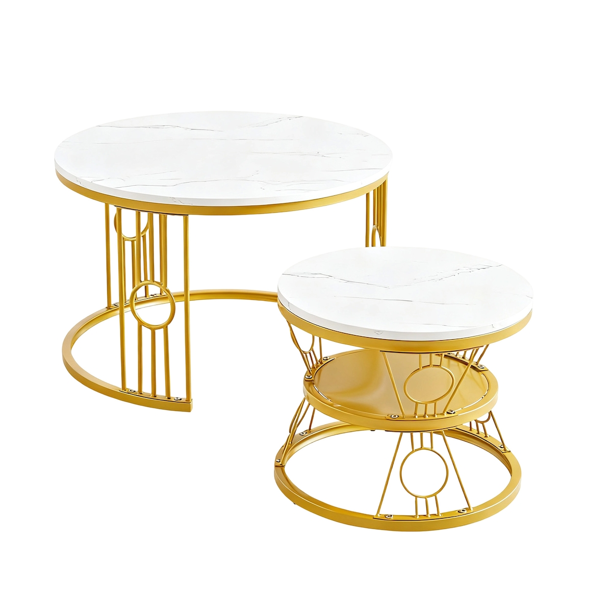 OKWISH Couchtisch Set 2-teilig rund mit MDF Tischplatte & Metallrahmen, stapelbar mit Schublade, modern & robust, ideal für Wohnzimmer
