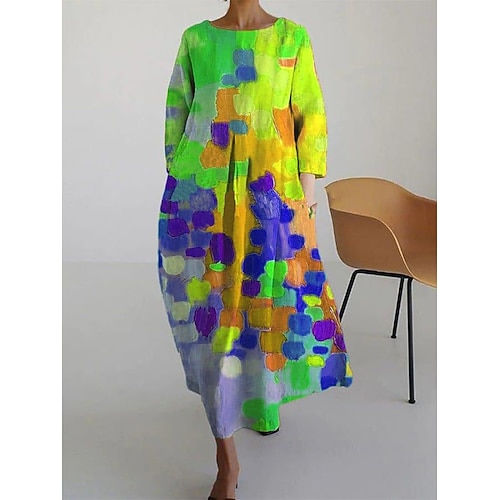 Per donna Abito maxi Abito a trapezio Casual Quotidiano Vestibilità regolare Grafico Blocco di colori Manica Lunga Scollo a V Rosso Blu Viola Primavera Autunno Inverno