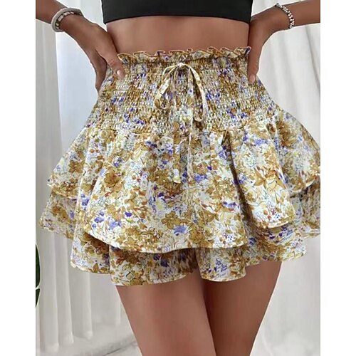 Per donna Shorts Vacanza Streetwear Casual Corto Vita media Floreale Elastico in vita Stampa Confortevole Micro-elastico Quotidiano All'aperto Vacanza Blu Cammello Bianco Rosa Estate Primavera