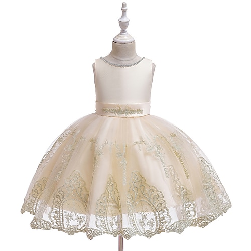 Abito da damigella d'onore bambina Ragazze Abito formale Abiti da sposa Feste Matrimonio Formale Adorabile Principessa Bello Patchwork Ricamato Floreale Senza Maniche Girocollo Nero Champagne Dai 4