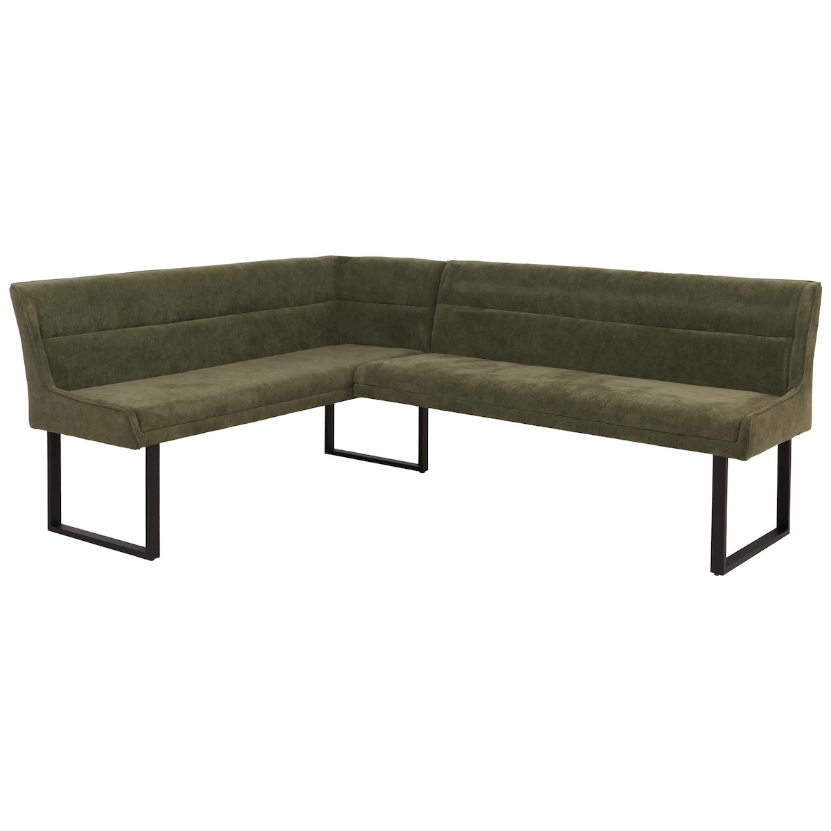 Mendler Eckbank HWC-O81, Esszimmerbank Bank, Öko-Tex (310g/m²) Chenille Stoff/Textil Metall 159x210cm ~ grün