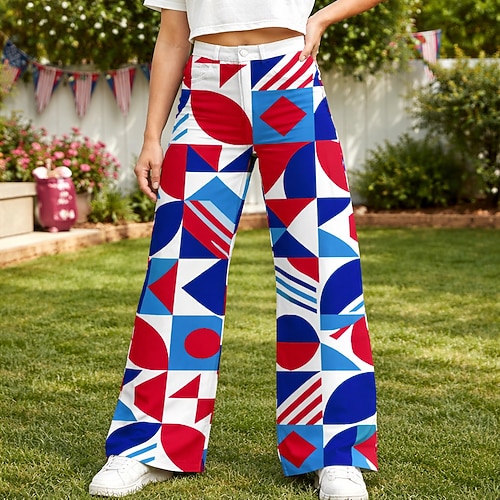 Americano 250 Retrò Vintage Anni '70 Pantaloni Pantaloni a gamba larga Hippie Disco Vita alta Costume Per donna Mascherata 4 Luglio Giorno dell'Indipendenza Semiquincentenario Adulti Pantaloni