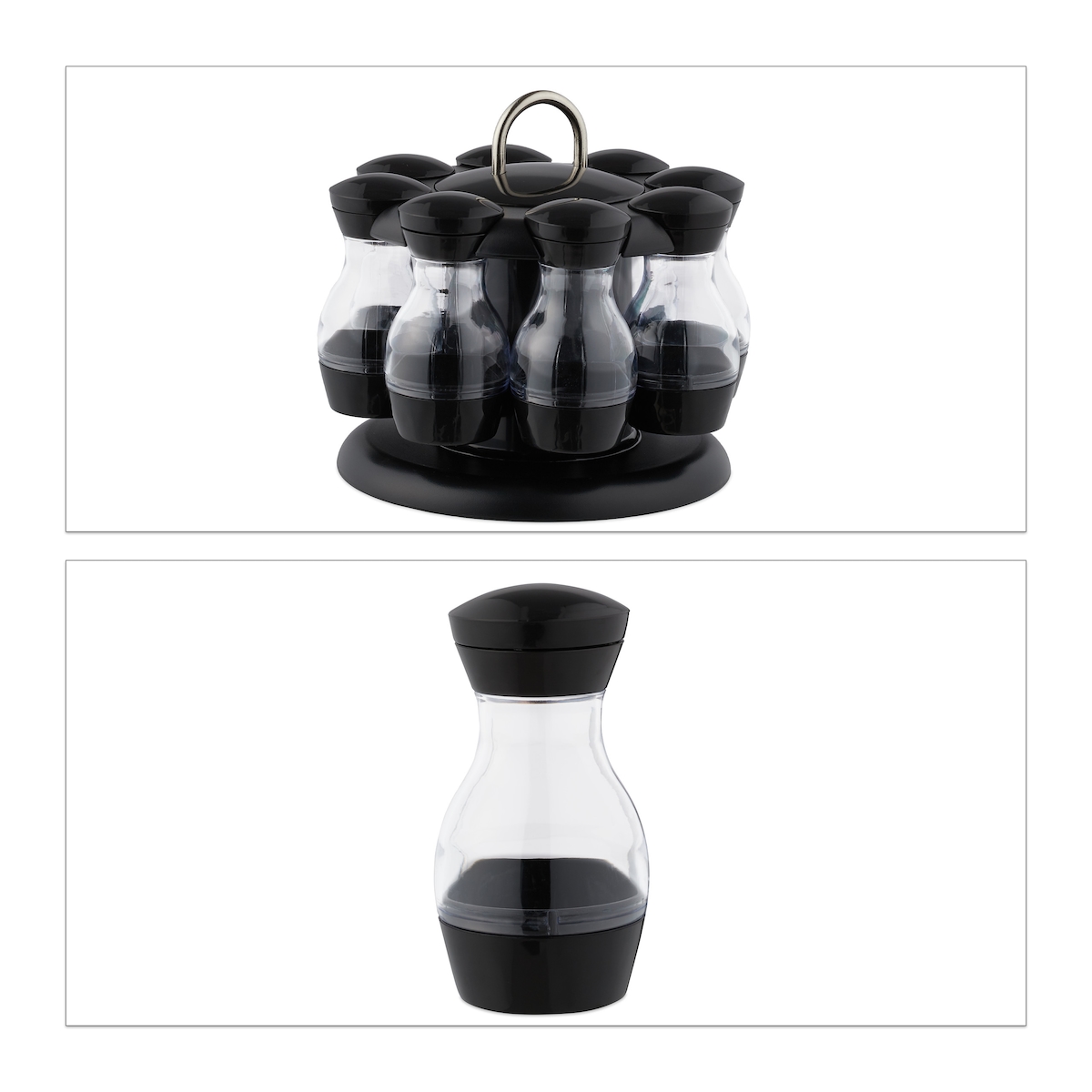 Relaxdays Gewürzkarussell, mit 8 Gewürzstreuern, 360° drehbar, tragbar, Kunststoff, HxD 17 x 19 cm, schwarz/transparent