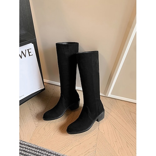 stivali da donna in pelle scamosciata a metà polpaccio con tacco spesso - classico design slip-on per l'autunno moda invernale