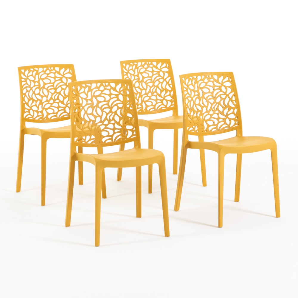 RATTATAN 4er-Set stapelbare Stühle aus Polypropylen mit Glasfasern für Außenbereich und Garten, Bar und Restaurant, Küche modernes Design - ANNA - Senfgelb