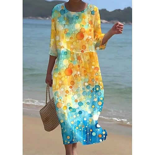 Per donna Abito Midi Vestito Casual Abito Stampato Moda Moderno Quotidiano Spiaggia Weekend Vestibilità regolare Linea Manica 3/4 Girocollo Blu Rosso Viola Verde Primavera Autunno