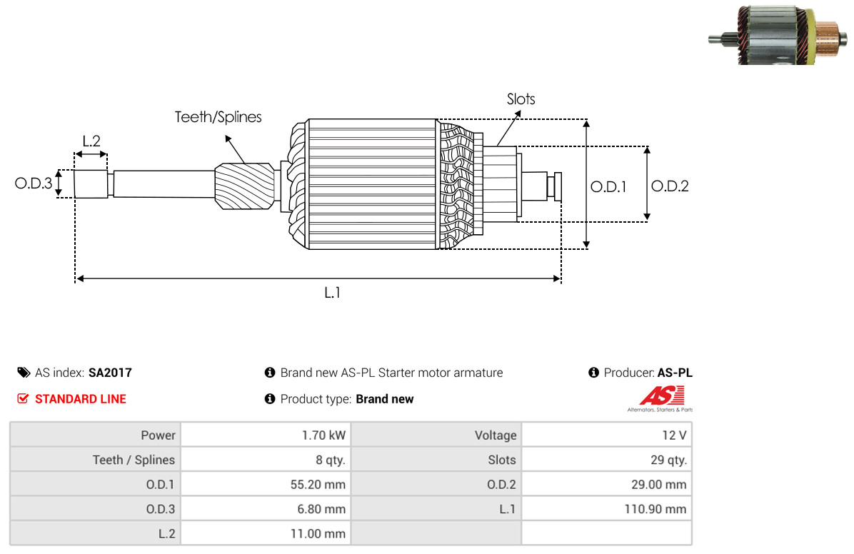AS-PL Anker, Starter Universal 12V 55,20mm für YAMAHA NISSAN 23310-4J606 23354-60Y00 129242-77100 SA2017