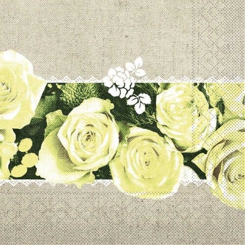 Mank Serviette aus Tissue, Lovely Roses in Gelb, 33 x 33 cm, 100 Stück - Rosen Blumen Floral