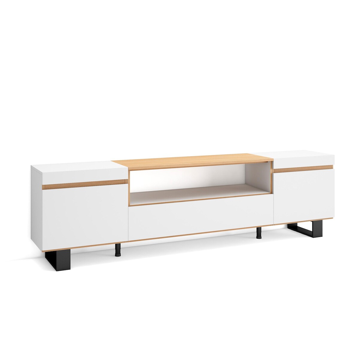 SKRAUT HOME TV-Schrank, Lowboard, 200x57x35cm, Für TV-Geräte bis zu 80", Industriedesign, Weiß und Eiche Soft