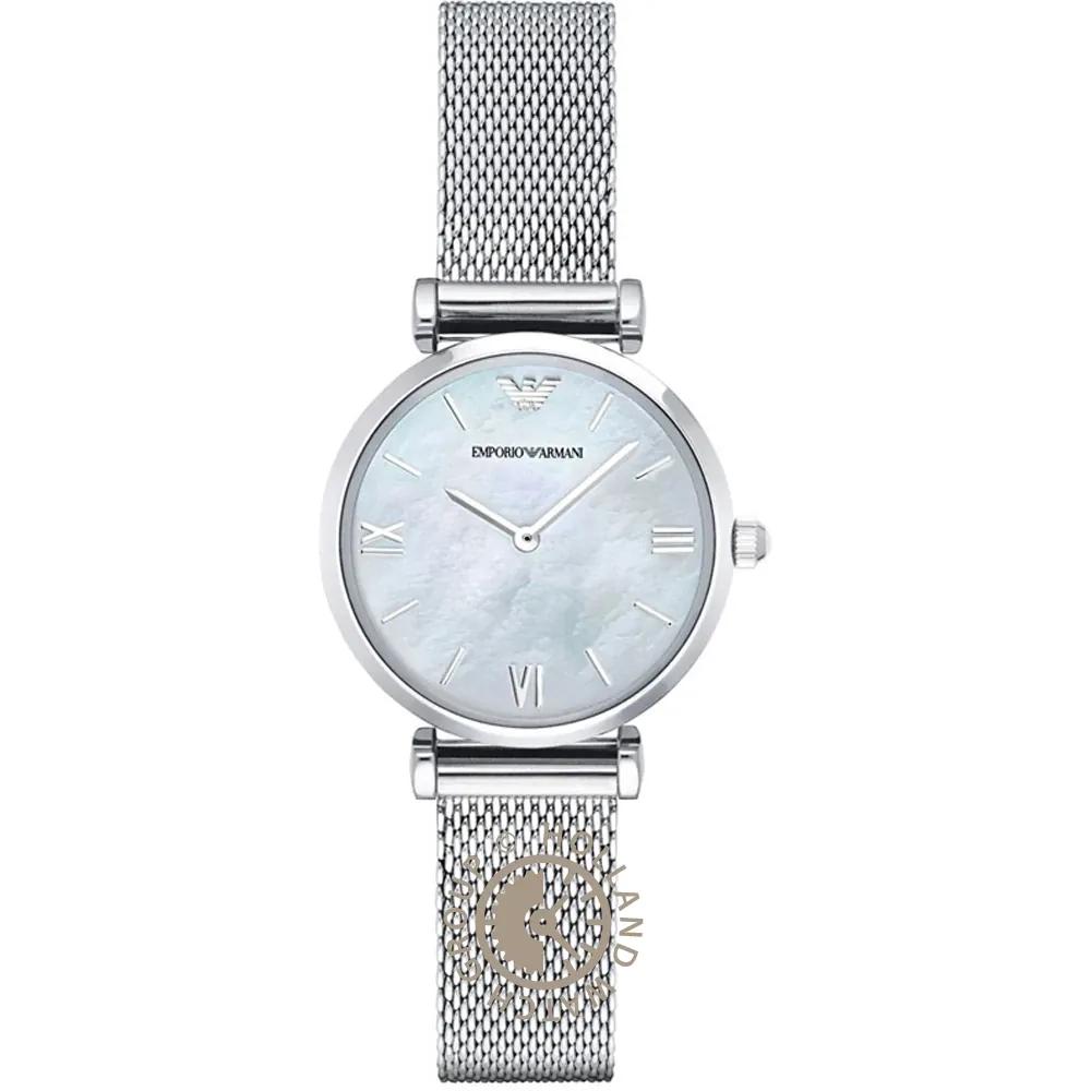 Emporio Armani Gianni T-Bar Perlmutt Edelstahl Silber Damenuhr Quarz AR1955 mutter der perle
