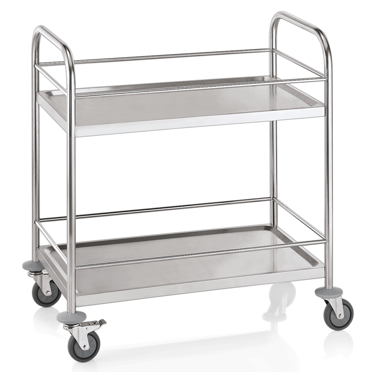WAS Germany - Servierwagen mit Reling, 2 Borde, 85 x 53 x 95 cm, Edelstahl