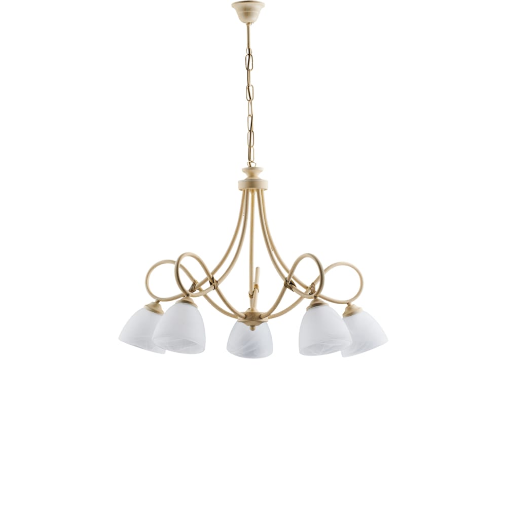 Lampadario 5 Luci Dallas BeLight Ferro Battuto Avorio e Vetro Bianco