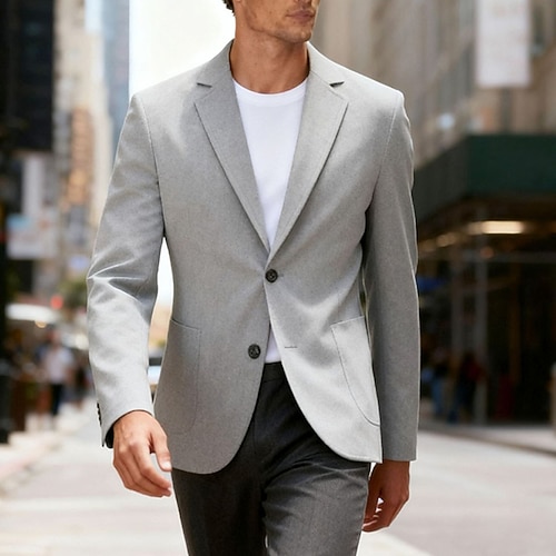 Per uomo Blazer Affari Cocktail party Ricevimento di matrimonio Moda Casual Primavera Autunno Poliestere Semplice Tasca Bottoni Confortevole Monopetto Giacca Blu Marrone Caffè Grigio