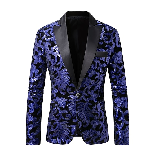 Per uomo Giacca blazer Collare di chiusura Natale Moda Festa Floreale Foglia Blazer Blu Rosso Viola Vestibilità su misura Monopetto Un Bottone