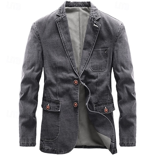 Per uomo Laurea Blazer Giacca di Jeans Affari Serata Formale Ricevimento di matrimonio Moda Casual Primavera Autunno Denim Semplice Tasca Casual / Quotidiano Monopetto due bottoni Giacca Nero Blu