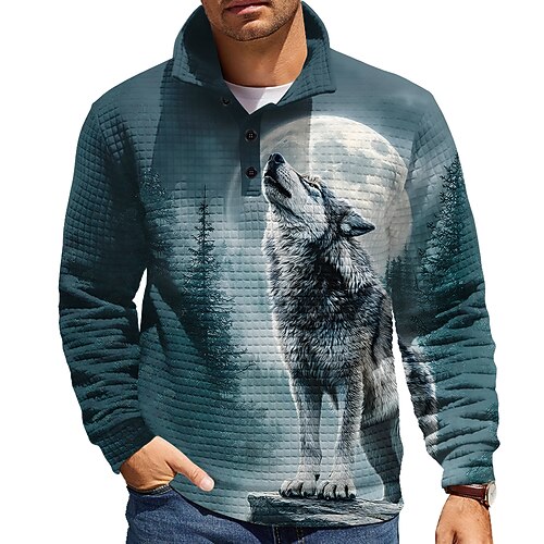 Per uomo Lupo Nido d'ape Felpa Quotidiano Classico Da caccia Collo alla coreana All'aperto Lavoro Regalo Blu Blu 2# Blu scuro Bottoni Autunno Inverno progettista S M L XL XXL XXXL