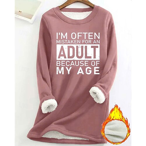 Per donna Felpa Pullover Lettera Moda Essenziale Casual Manica Lunga Girocollo Top Regolari Streetwear Abbigliamento Quotidiano Casuale Stampato Foderato in pile Nero Giallo Rosa Rosa scuro Blu