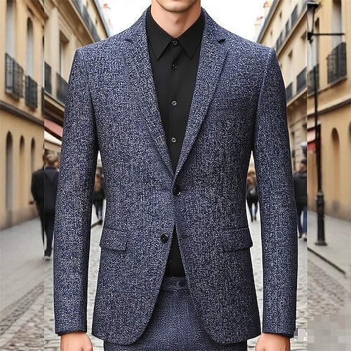 Per uomo Blazer in lino Blazer Affari Cocktail party Ricevimento di matrimonio Moda Casual Primavera Autunno Poliestere Lino Semplice Tasca Bottoni Confortevole Monopetto Un Bottone Giacca Nero