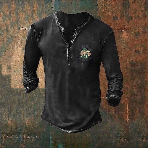 Per uomo Maglietta trifoglio di San Patrizio Camicia Henley Magliette T-shirt San Patrizio Henley Da mare Strada Manica lunga Fibbia Abbigliamento Poliestere Di tendenza Festa di San Patrizio