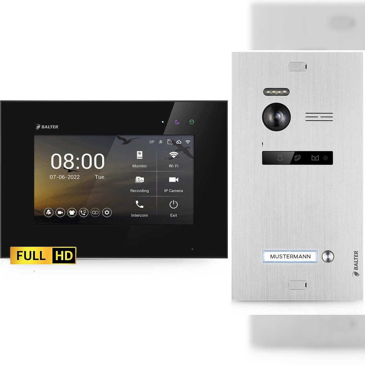 HD Video Türsprechanlage für 1 Familienhaus, 1x Monitor, Balter EVO HD Silber/Schwarz