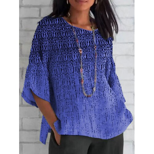 Per donna Camicia Grafico Gradiente di Colore Retrò Vintage Manica 3/4 Girocollo Top Regolari Quotidiano Ferie Stampato Bianco Giallo Rosso Blu Viola Estate Primavera Autunno