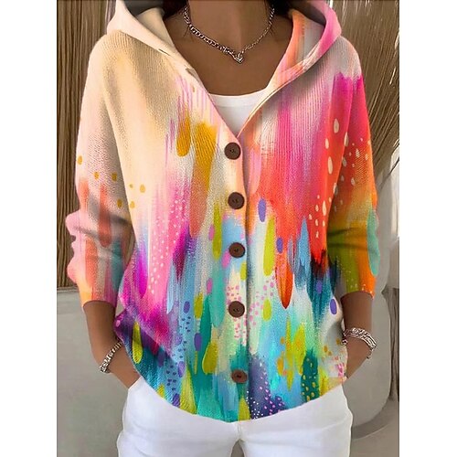 Per donna Felpa Cardigan Vacanza Moda Streetwear Grafico Gradiente di Colore A Coste Con Cappuccio Tasca Lavorato a maglia Stampato Manica Lunga Top Regolari Maglia All'aperto Quotidiano Weekend Rosa