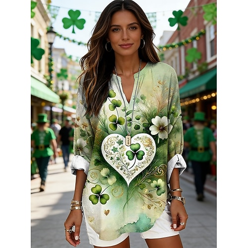 Giorno di San Patrizio San Patrizio Festa di San Patrizio Per donna Maglietta Trifoglio Elegante Casual Manica Corta Scollo a V Top Regolari Quotidiano Stampato Verde Estate