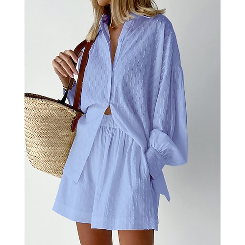 Per donna Attivo Moda Streetwear Set di Pantaloncini Bolero Top Manica Lunga Manica a Palloncino Colletto a Camicia Tinta unica Patchwork All'aperto Vacanza Quotidiano Nero Bianco Giallo Autunno