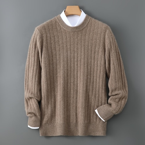 Per uomo Maglione di lana Maglione a maglia Maglione lavorato a maglia A Coste Maglia Top Regolari Lavorato a maglia Tinta unica Girocollo Moda Streetwear Casuale Abbigliamento quotidiano