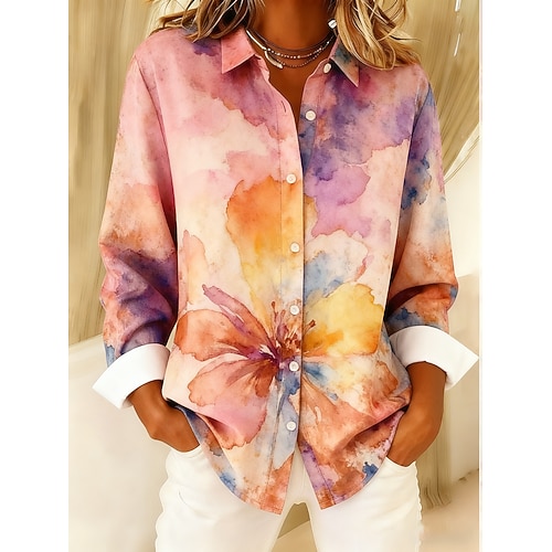 Per donna Camicia Floreale Elegante Casual Manica Lunga Colletto a Camicia Top Regolari Quotidiano Bottoni Stampato Rosa Primavera Autunno Inverno