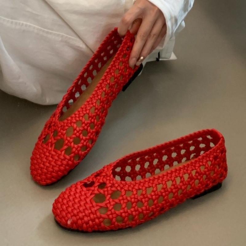 Vintage Flettede Hule Flate Sandaler for Kvinner Sommer Rund Tå Grunn Sko Komfort Myk Strand Kasual Sko Loafers cm gull
