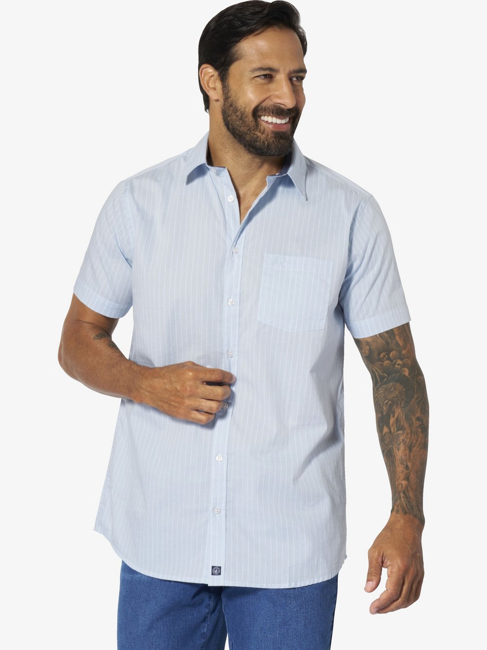 Jan Vanderstorm Kurzarmhemd Herren Comfort Fit Baumwolle blau, XXXL
