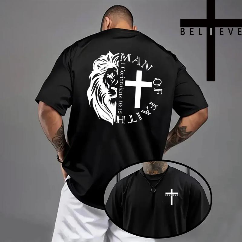 Zomer Heren 100% Katoenen T-shirt met Jezus Kruis Patroon Zachte en Comfortabele Stof Geschikt voor Casual Kleding Thuis cm