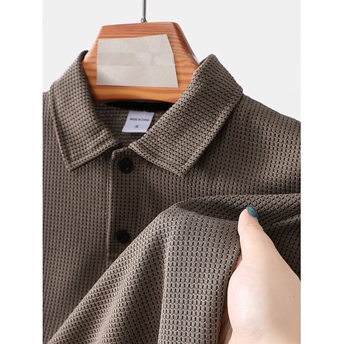 Per uomo Magliette Polo a Nido d'Ape Polo Casuale Formale Collo ripiegato Manica Lunga Moda Tinta unica Testurizzato Bottoni Puro Autunno Primavera Autunno Autunno Inverno Vestibilità regolare