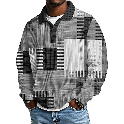 Per uomo Blocco di colori Geometrico Magliette Polo a Nido d'Ape Testurizzato Manica Lunga Magliette polo Bavero Abbigliamento Sportivo Casual Scuola Athleisure Abbigliamento quotidiano Stampa 3D
