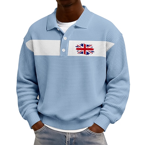 Per uomo Bandiera del Regno Unito Magliette Polo a Nido d'Ape Manica Lunga Magliette polo Bavero Casual Athleisure Abbigliamento quotidiano Stampa 3D Primavera Autunno Inverno Blu Rosso Blu marino
