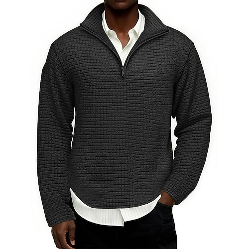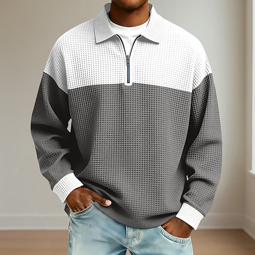 Per uomo Magliette Polo a Nido d'Ape Polo Vacanza Streetwear Zip a un quarto Manica Lunga Moda Essenziale Tinta unica Jacquard Primavera Autunno Vestibilità regolare Nero Bianco Vino Kaki Grigio