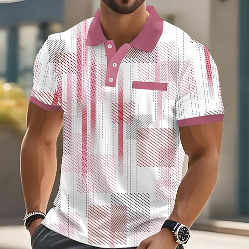 Per uomo Geometrico Linea Polo Manica Corta Magliette polo Camicie con Colletto Business Casual Scuola All'aperto Abbigliamento quotidiano Stampa 3D Estate Bianco Blu Viola