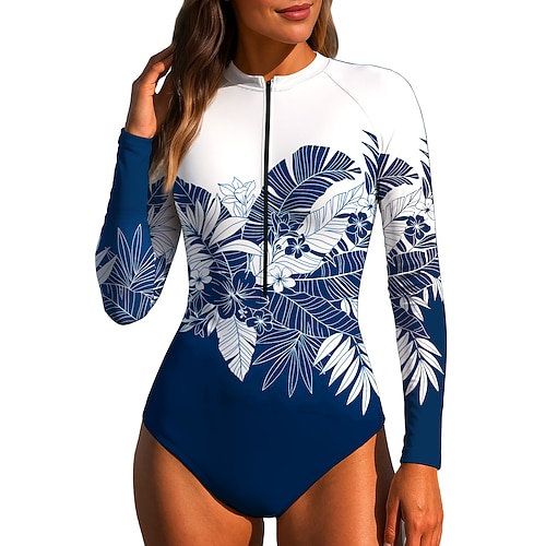 Per donna Costume da Bagno Rash Guard Floreale Protezione Solare UV UPF50 Asciugatura Rapida Manica Lunga Costume da Bagno costume da bagno 2 Pezzi Cerniera Frontale Surf Nuoto Estate