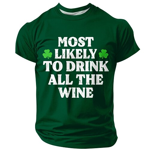 Giorno di San Patrizio più probabile a bere tutto il vino divertente maglietta verde da uomo T-shirt grafica Shamrock trifoglio festa vacanza abbigliamento S M L XL XXL XXXL