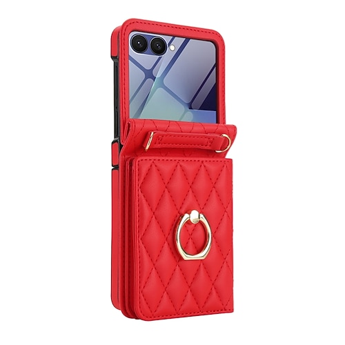 telefono Custodia Per Samsung Galaxy Z Flip 7 Z Flip 6 Z Flip 5 Z Flip 4 Z Flip 3 Copertura Posteriore Supporto ad anello con Cordino Con Cinturino da Polso Retrò TPU Pelle PU
