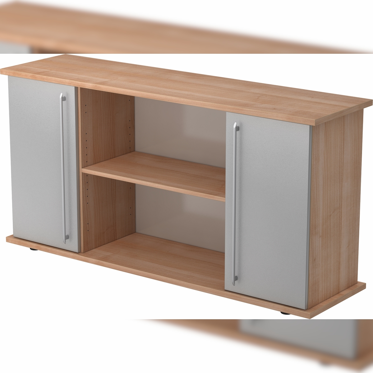 bümö Sideboard Nussbaum/Silber mit Flügeltüren & Regal - Büromöbel Sideboard Holz 166cm breit, 45cm schmal, Büro Schrank für Flur oder als
