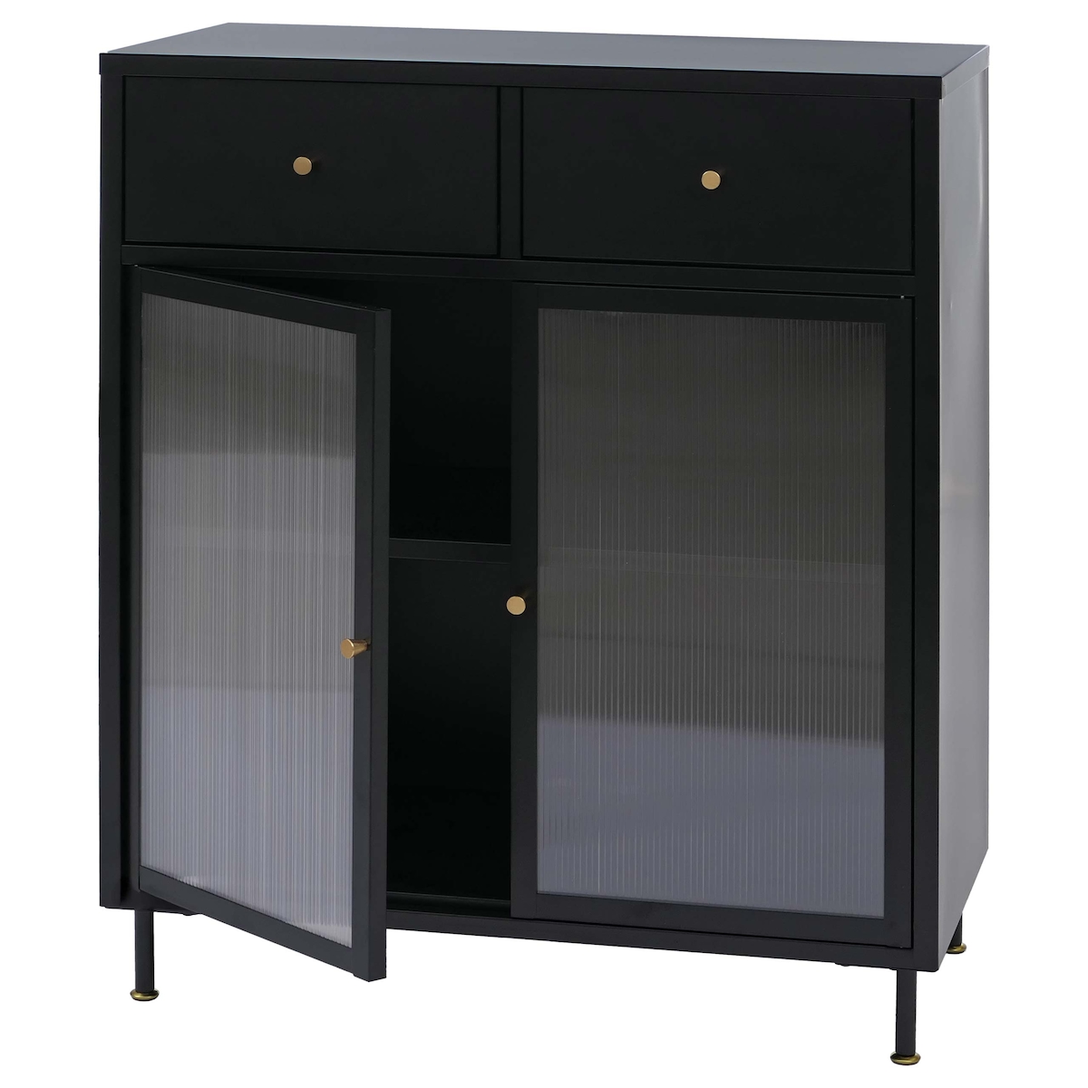 Mendler Kommode HWC-O87, Schrank Sideboard Highboard, Staufächer Schubladen Industrial Metall Schilfglas 96x80x40cm ~ schwarz