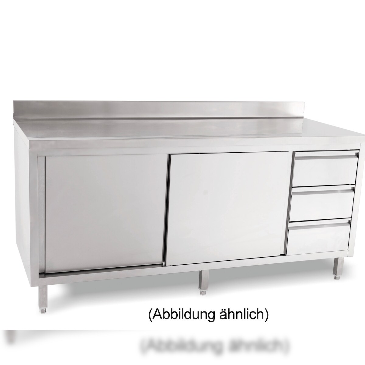Arbeitsschrank mit Schiebetüren mit 50 mm Aufkantung Schubladen rechts