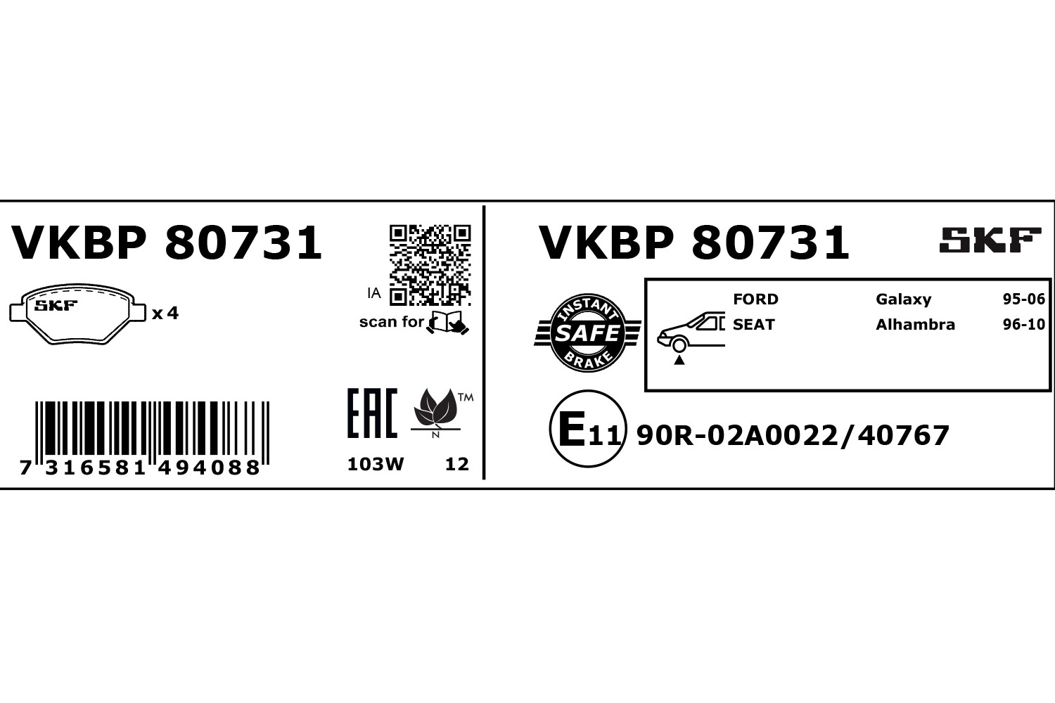 SKF Bremsbelagsatz, Scheibenbremse VKBP 80731 vorne rechts links für SKODA VW SEAT AUDI FORD 7M0698151 95VWX2K021AA 1027703