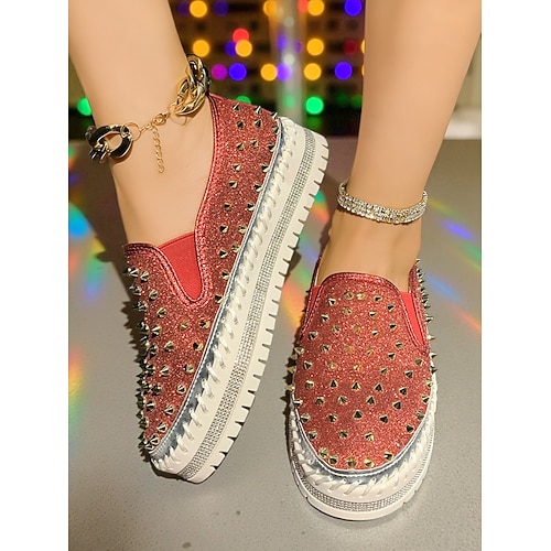 sneakers slip-on da donna con borchie glitterate - scarpe casual con plateau scintillanti e finiture in strass per feste notturne e abbigliamento da discoteca abiti da festa