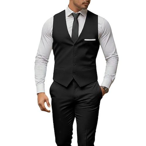 Gilet casual da uomo con revers a V, nero bordeaux, formale, tinta unita, vestibilità su misura