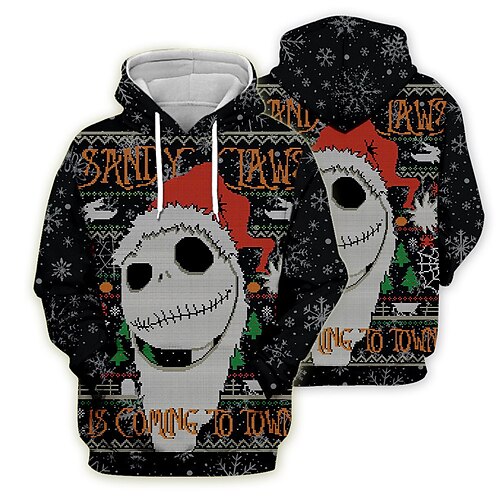 Nightmare Jack Skellington Felpa con cappuccio Felpa con cappuccio natalizia divertente 3D Natale Tasca frontale Grafica Per Da coppia Per uomo Per donna Per adulto Natale Carnevale Stampa 3D Feste