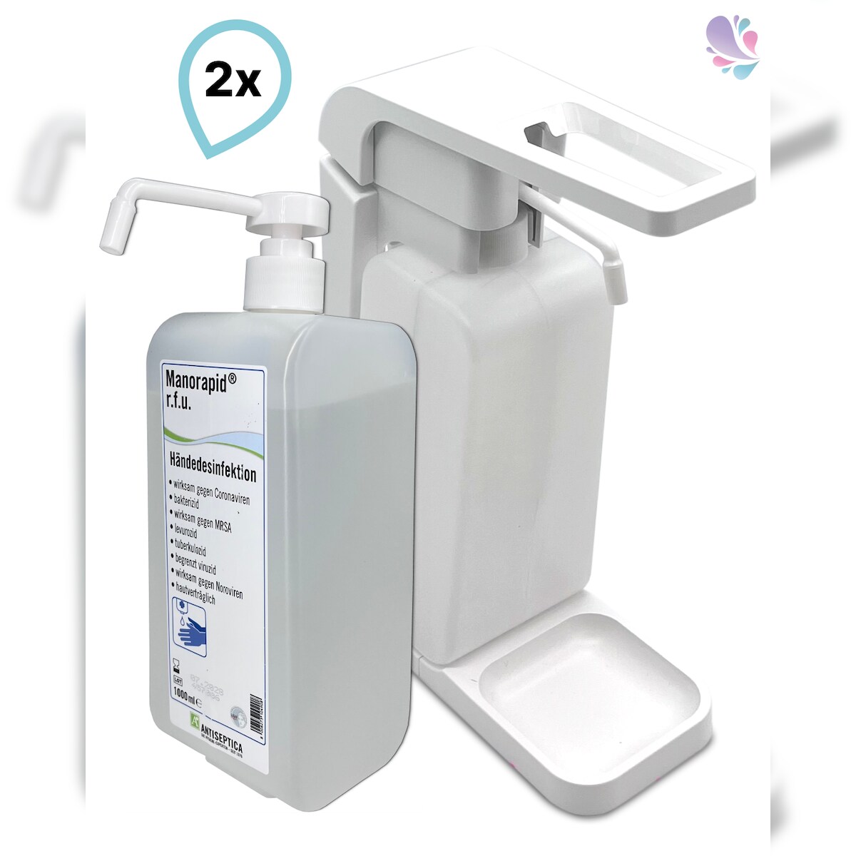 SET: Blanc Hygienic Hebelspender 1.000ml + 2x 1 Liter Haut- und Händedesinfektion mit vormontierter Pumpe